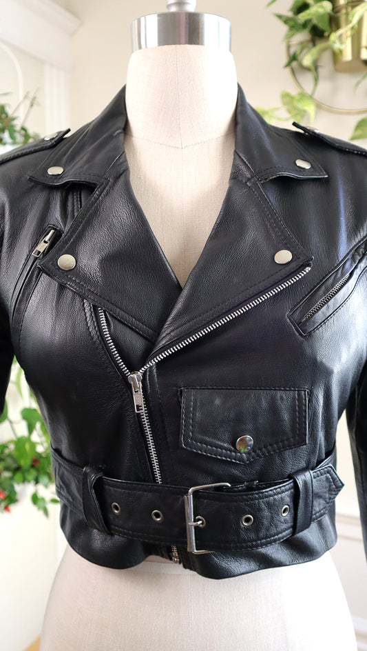 1980s 1990s WILSONS LEATHER Black Moto Jacket | medium/large