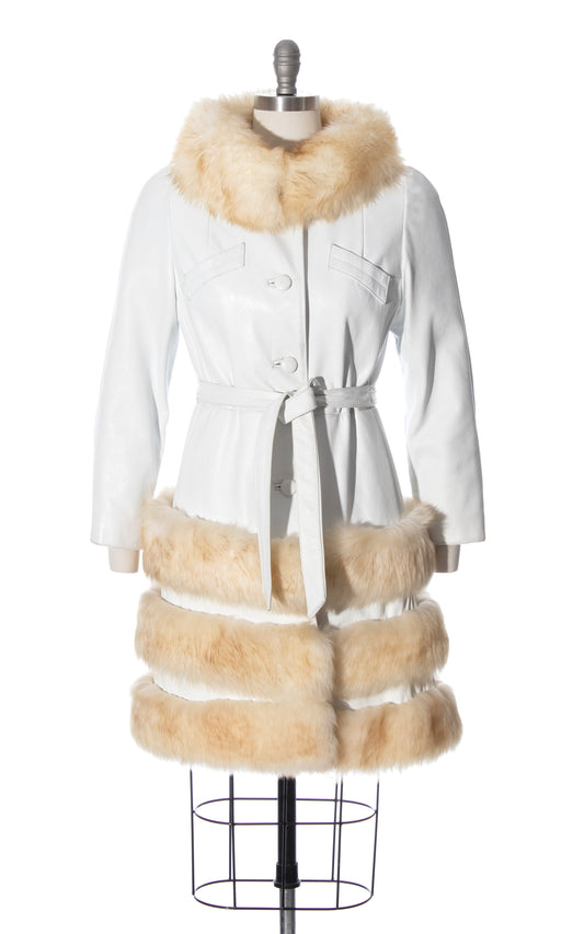 1970s Shearling Fur & White Leather Princess Coat | x-small/small