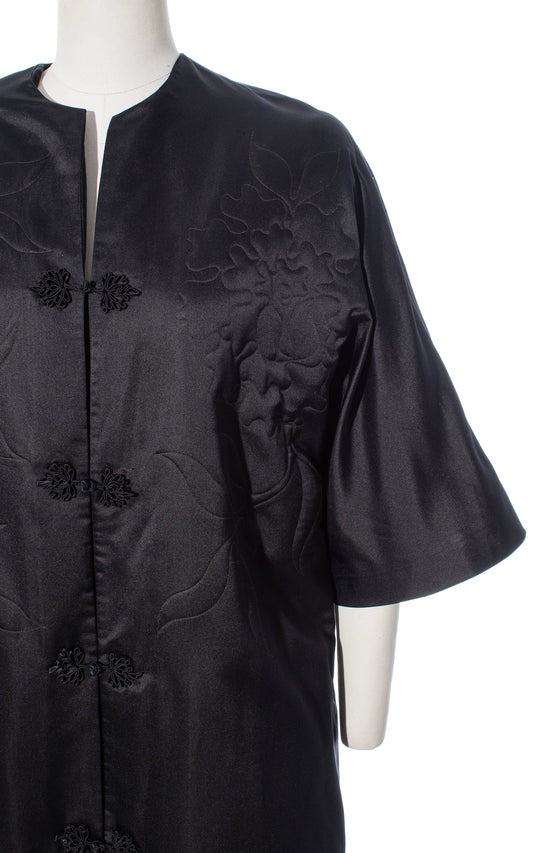 1960s DYNASTY Floral Stitched Silk Satin Opera Coat | large