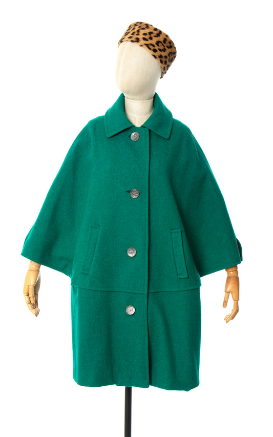 1970s Austrian Green Wool Mohair Cape Coat | medium/large