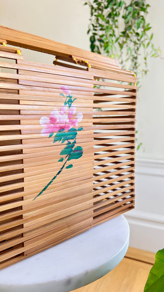 1970s Floral Bamboo Cage Purse