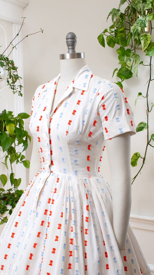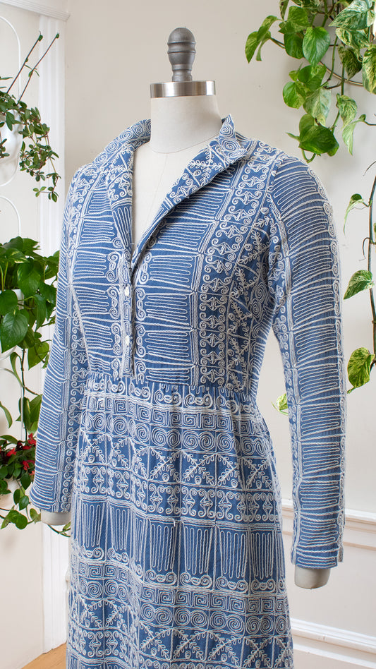 1970s Embroidered Blue Shirtwaist Maxi Dress | small/medium