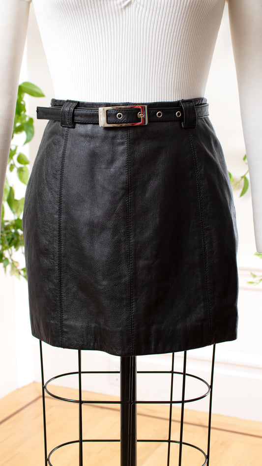 2000s Y2K WILSONS Black Leather Mini Skirt | small