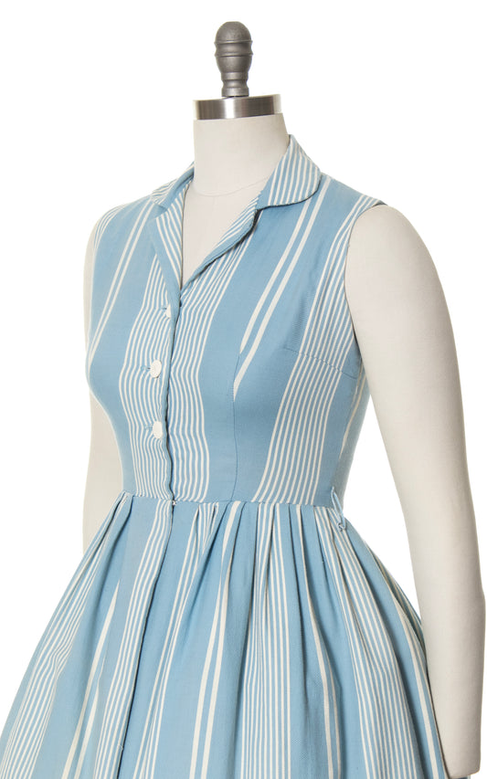 1950s 1960s Floral Cotton Cummerbund Dress | small