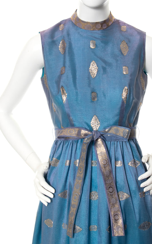 1970s Flutter Sleeve Tie Waist Maxi Dress | small