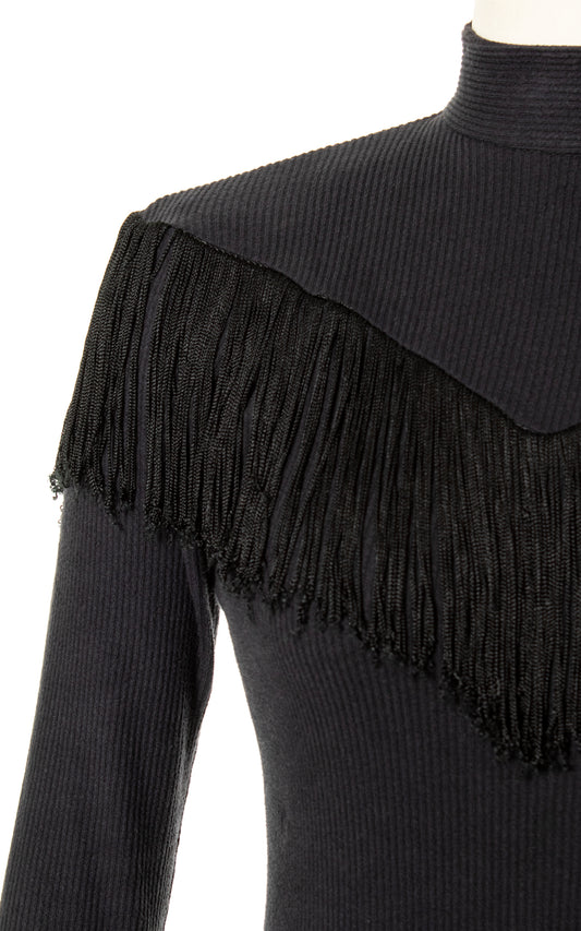 1990s Fringe Black Jersey Wiggle Dress | x-small/small/medium