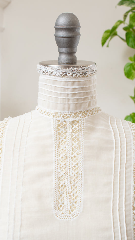Antique Edwardian 1910s White Cotton & Lace Blouse | medium/large