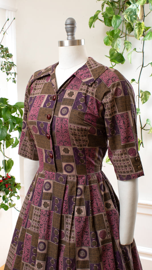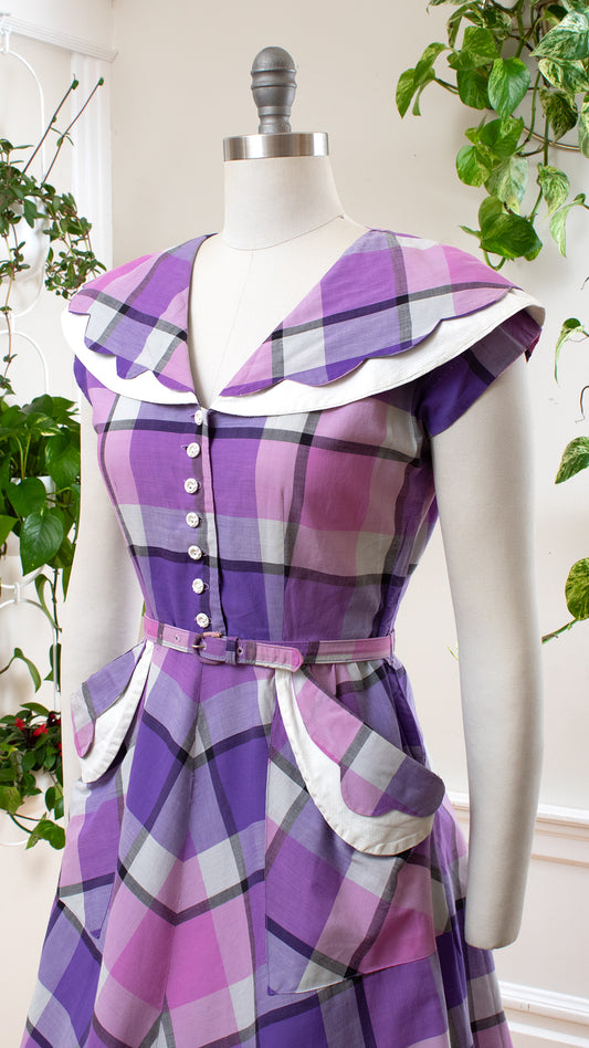 1940s 1950s Purple Plaid Shirtwaist Dress | small