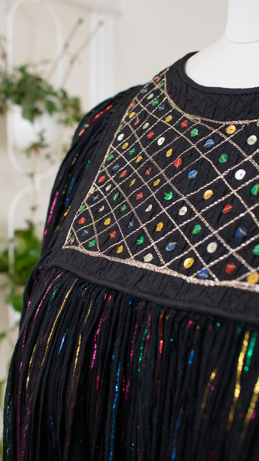 1970s Metallic Rainbow Cotton Gauze Dress | small/medium
