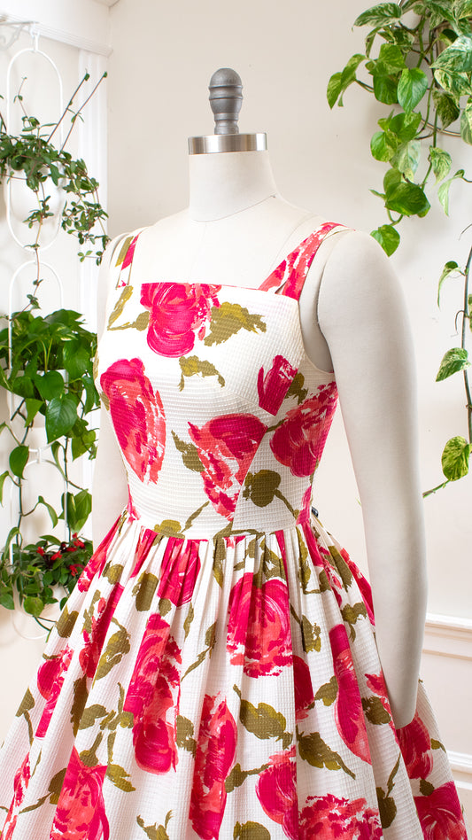 1950s Floral Embroidered Circle Skirt Sundress | x-small