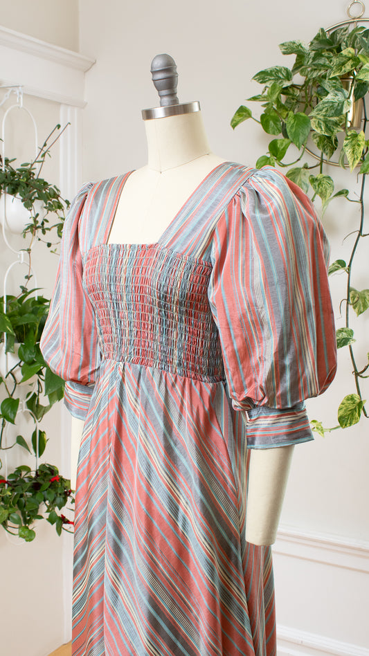 1970s does 1930s Striped Puff Sleeve Gown | x-small/small