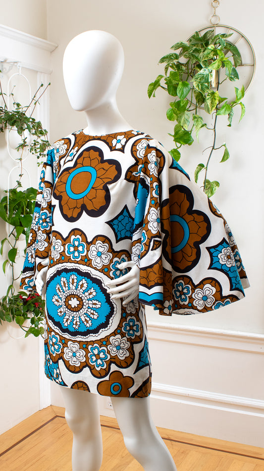 1960s 1970s Psychedelic Bell Sleeve Mini Dress | x-small/small