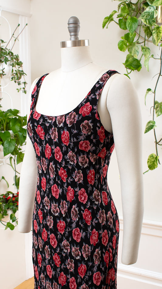 2000s Beaded Bias Cut Rose Print Maxi Dress | small/medium/large