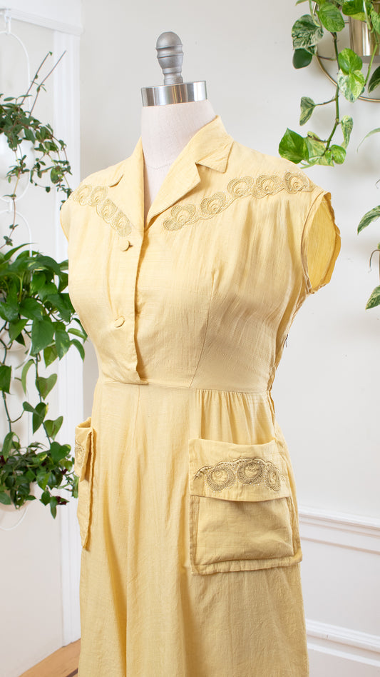 1950s Beaded Embroidered Yellow Shirtwaist Dress | x-large