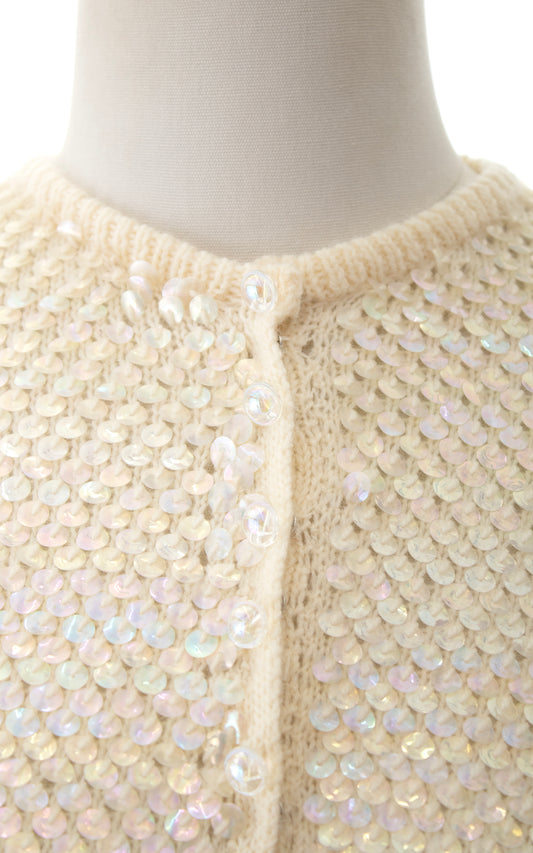 1950s 1960s Sequin Knit Wool Cardigan | medium/large