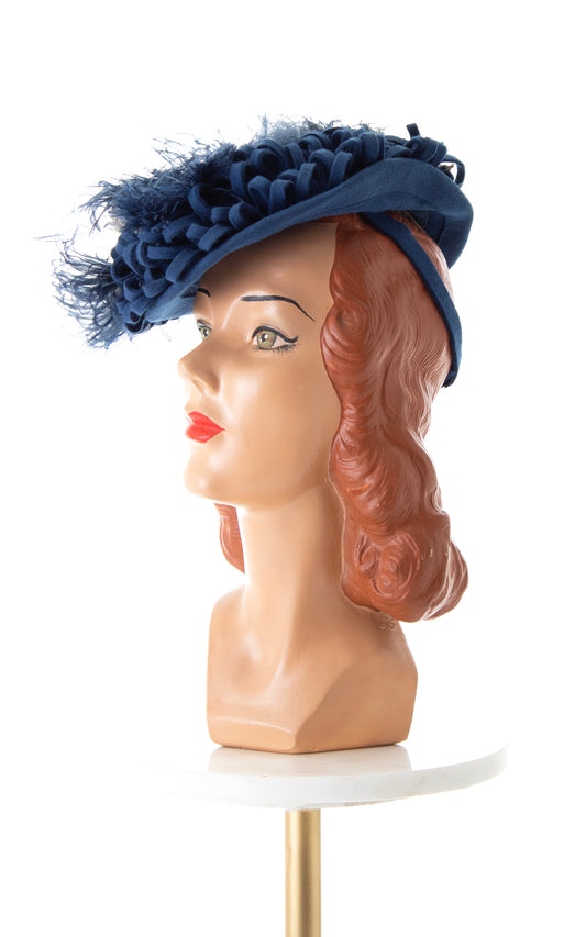 1940s Feathered Loopty Wool Felt Tilt Hat
