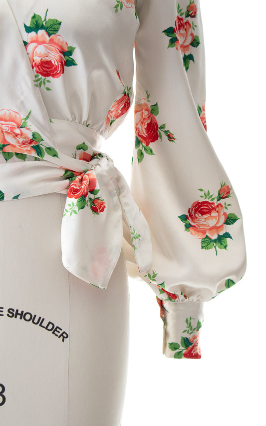 1970s does 1940s Rose Satin Cropped Wrap Top | x-small/small