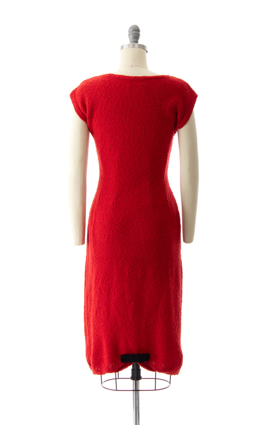 1950s SNYDERKNIT Bow Trim Knit Red Wool Sweater Dress | x-small/small