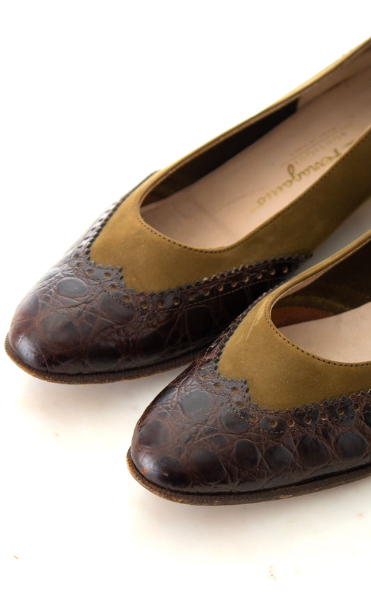 1960s FERRAGAMO Leather & Suede Oxford Flats | size US 7