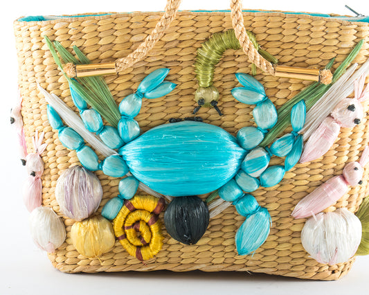 1960s Crab Sea Creatures Novelty Straw Handbag