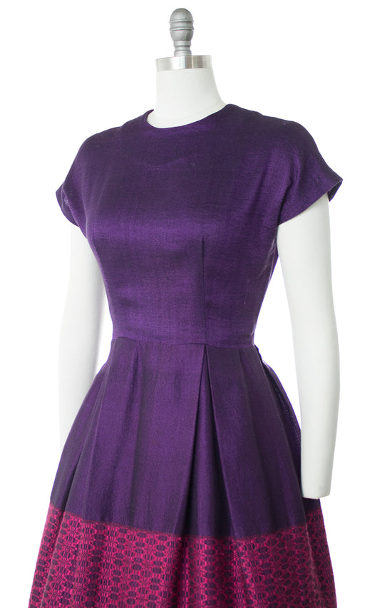 1950s Hand-Loomed Color Block Dress | medium
