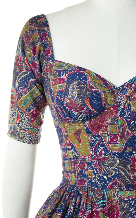 1950s Plum Printed Cotton Sundress and Bolero Set | medium