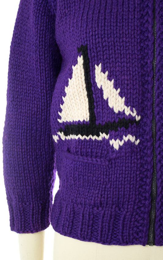 1950s Sailboat Novelty Knit Wool Cowichan Sweater | x-small/small