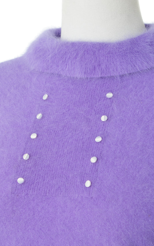1950s Lavender Angora Knit Cropped Sweater | medium/large