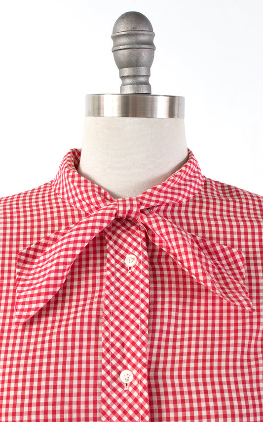 1960s Tie Neck Red Gingham Blouse | small/medium