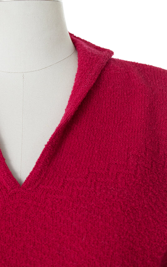 1950s Raspberry Pink Knit Wool Cropped Sweater | xs/small/medium