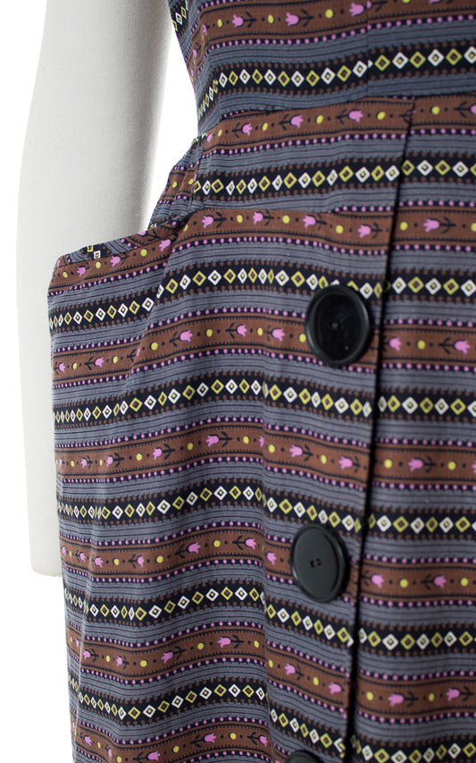 1950s Floral Striped Wiggle Dress with Pockets | medium