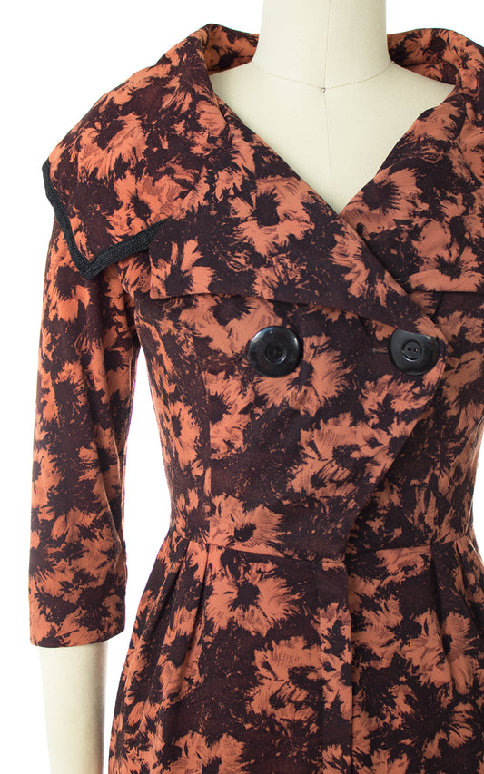 1950s Floral Jersey Wiggle Dress | small