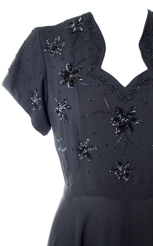 1940s Floral Sequin Beaded Rayon Evening Dress | medium