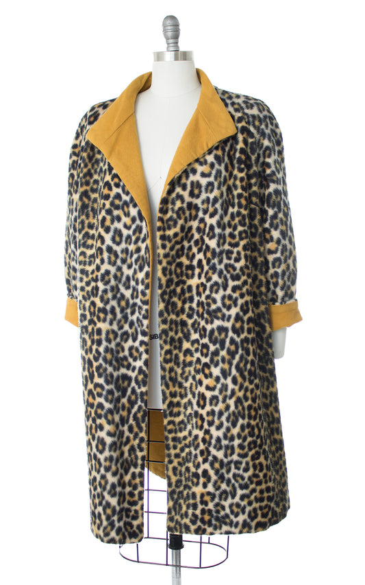 1960s Reversible Leopard Print and Mustard Yellow Swing Coat | medium/large