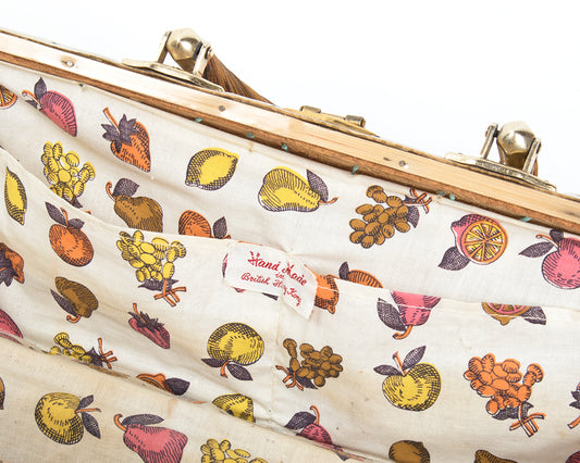 1950s Fruit Novelty Print Lined Wicker Box Purse