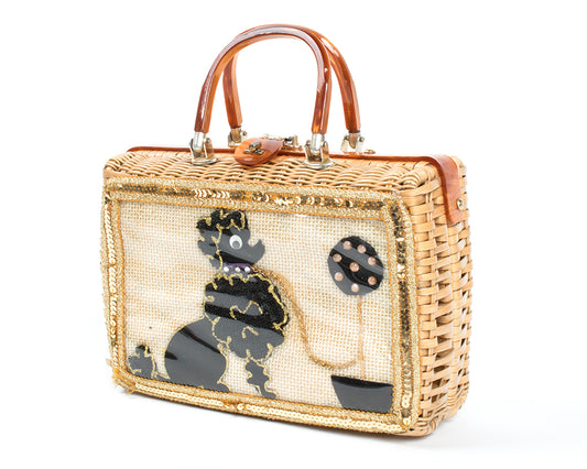 1950s Poodle Novelty Wicker & Lucite Box Purse