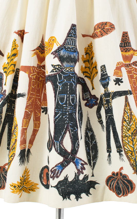 1950s Scarecrow, Pumpkins & Leaves Novelty Border Print Skirt | small