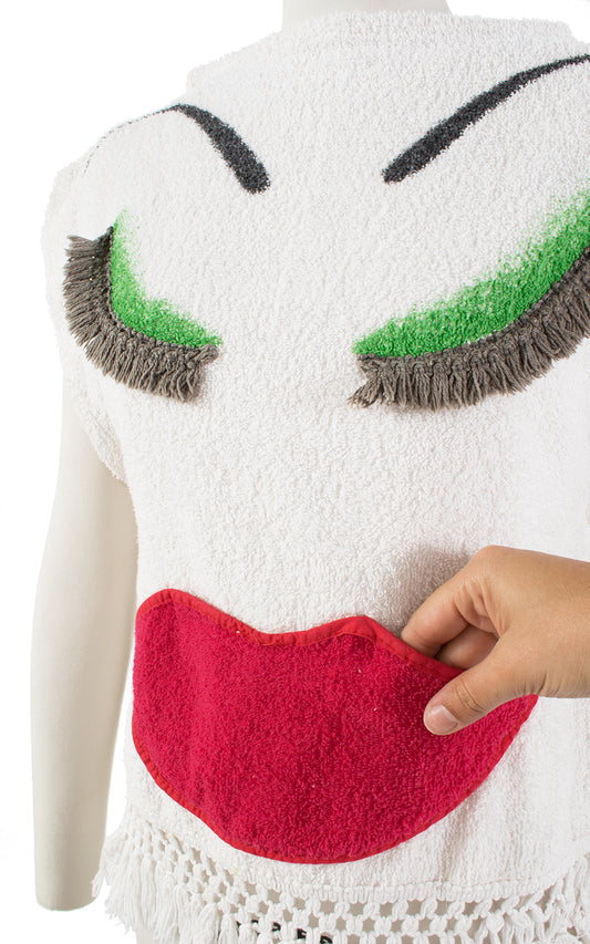 1960s Face Novelty Print Terrycloth Swimsuit Coverup | xs/small/medium