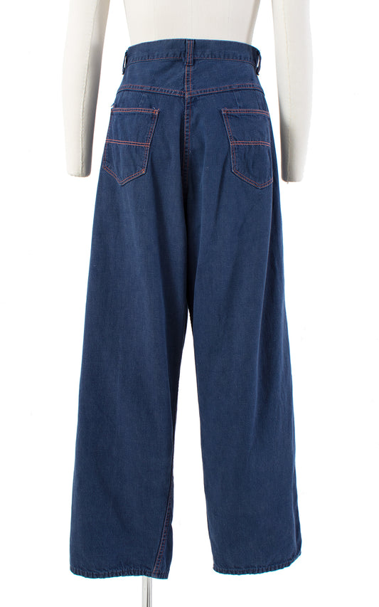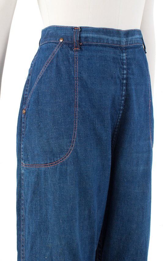 1940s Side Zipper Adjustable High Waist Blue Denim Jeans | medium