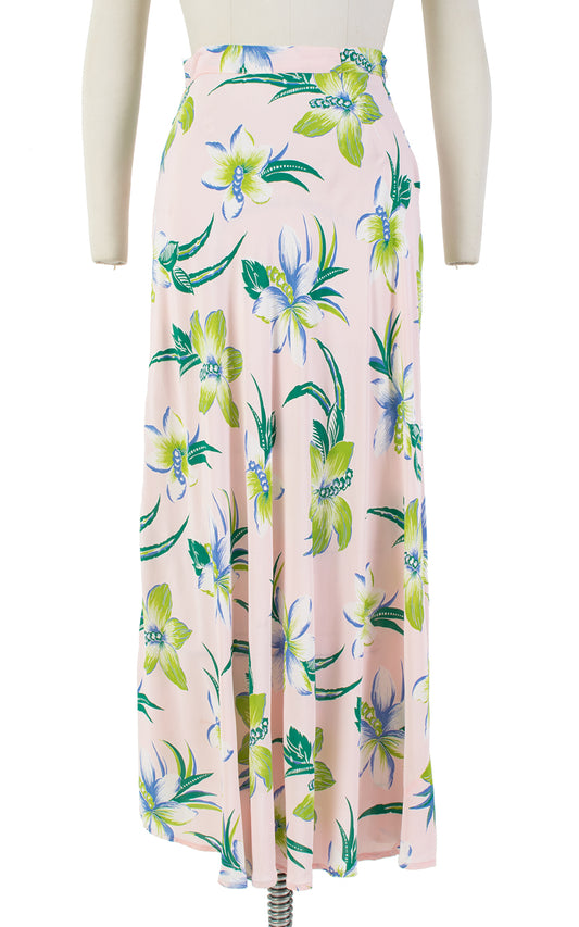 1940s Hawaiian Hibiscus Cold Rayon Midi Skirt | small