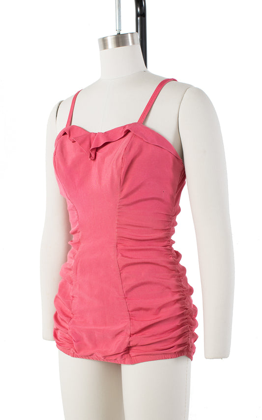 1950s Kerrybrooke Sea Stars Pink Ruched One Piece Swimsuit | small