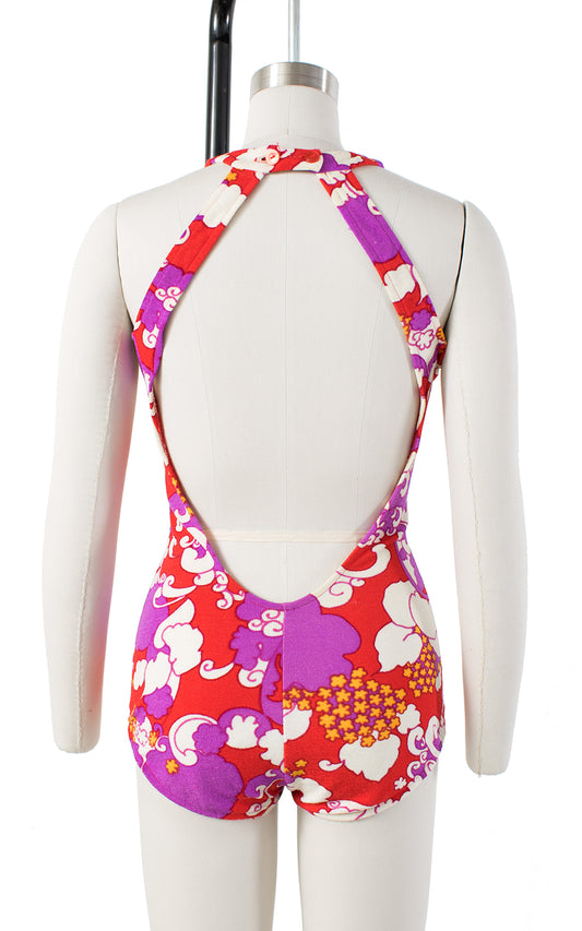 1960s Catalina Psychedelic Clouds Plunging Open Back Swimsuit | x-small/small