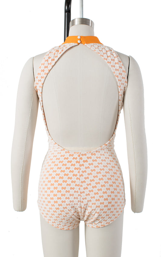 1960s Lace Overlay Orange Open Back Swimsuit | small