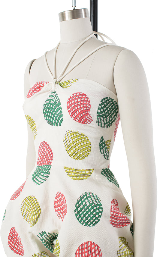 1950s Polka Dot Balloon Shorts Cotton Piqué Romper | small