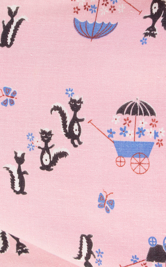1950s Skunks Flower Cart Novelty Print Pink Circle Skirt | x-small