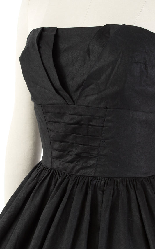 1950s Strapless Black Cotton Circle Skirt Sundress | small