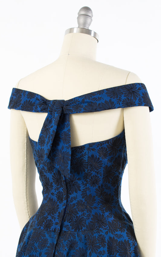 1950s Floral Damask Off the Shoulder Party Dress | x-small