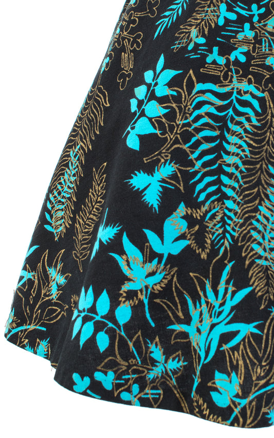 1950s Mexican Metallic Fern Black Cotton Circle Skirt | medium