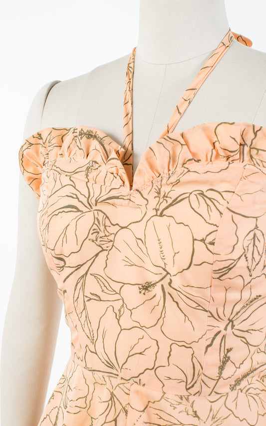 1950s Style Hawaiian Hibiscus Strapless Halter Sundress | small