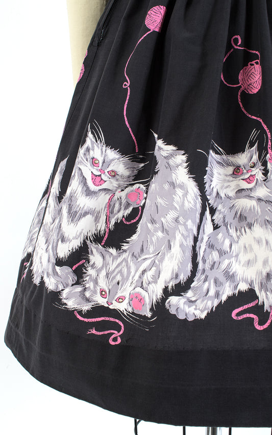 1950s Psycho Kitties Cat Novelty Border Print Skirt | small